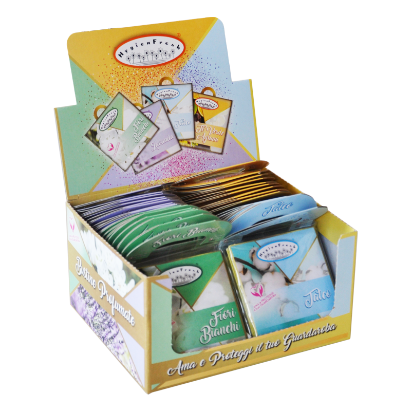 Estrarre le bustine dal cellofan e posizionarle negli armadi, nei cassetti o in macchina.