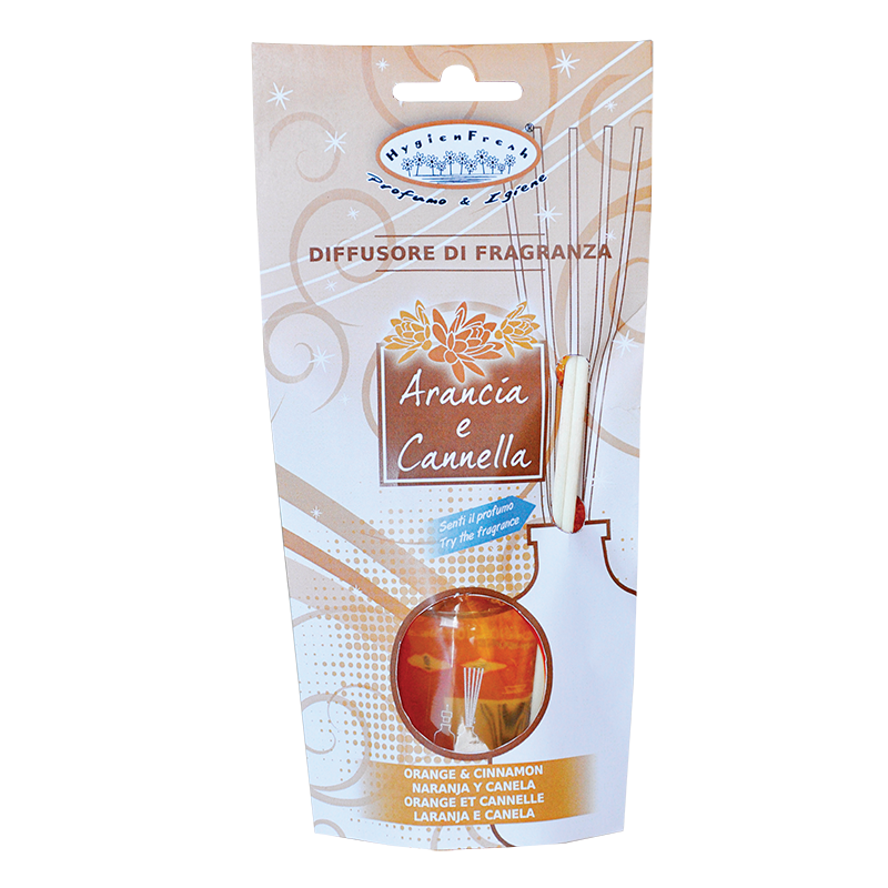 La scatola contiene 6x50ml deodiffusori alla fragranza Arancia e Cannella.